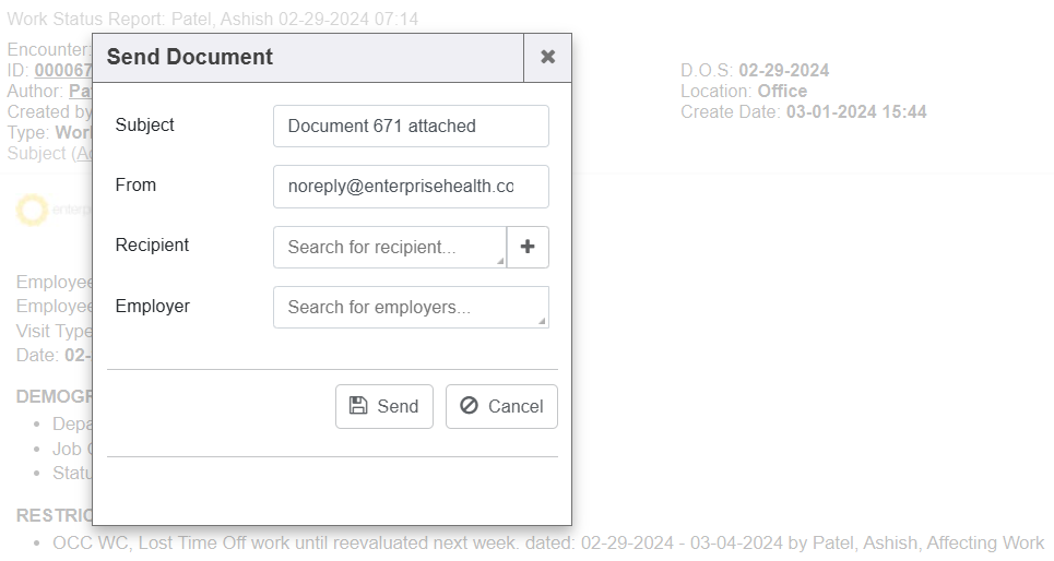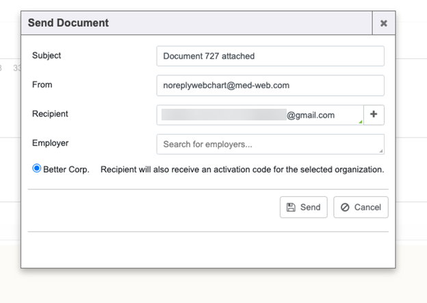 The “Send Document” window will pop up: